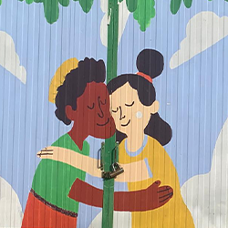 ביוזמת מרכז האמנים ציירו אמני תקוע על המבנים במרכז. כל אחד מהם קיבל נושא מסוים ובציורו גם הביא הדהוד לעולם האמנות. הנושא שבחר האמן שמעון אנגל הוא אהבה, ובציורו התייחס לציור הנשיקה של גוסטב קלימט….