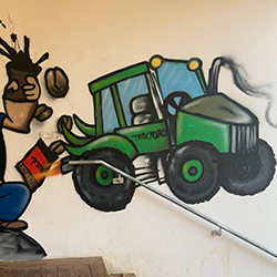 בני הנוער בקיבוץ ציירו את הציור בהדרכת האמן בנצי ברופמן….