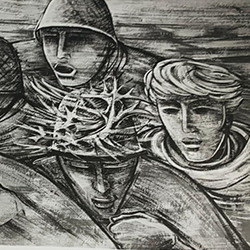 אלכס לוי ניצול שואה שהתחנך בחברת נוער יוגוסלווית בשער העמקים, ומגיל צעיר צייר בסגנון ראליסטי־חברתי בהשפעת ציורי הקיר של יוחנן סימון ודייגו ריברה ובהדרכת המורה דן אמיתי. ב־1956 במלחמת סיני נהרג ראובן ירון ידידו הטוב מהקבוצה…