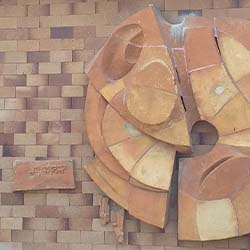 על רקע לבני שמוט יש תבליט בהשראת הפסוק מספר יואל "כִּי מָלְאָה גַּת הֵשִׁיקוּ הַיְקָבִים", המופיע בעבודה. העיגול הגדול יכול להזכיר במבט ראשון שמש לוהטת, אך ככל הנראה מדובר בגת. למי שיש ספק ברעיון שמדובר בגת,…