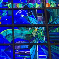 ציור קיר בצבעי טורקיז עדינים ובו נראים מדענים ודימויים מדעיים. היצירה מוקמה בבניין הלן ומילטון קימלמן בקומת הכניסה עוד בטרם הוסיפו לו שתי קומות. מצב השתמרות היצירה: בסדר. חלק מהציור מתקלף….