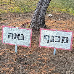 את השלטים בפסיפס הכינו בימי הקורונה ותיקי המושב ניר גלים….