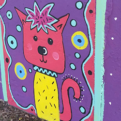 את הציורים על המקלטים ציירו ב־2021 ילדי כיתה ו במושב בהנחיית האמנית לימור פלג….