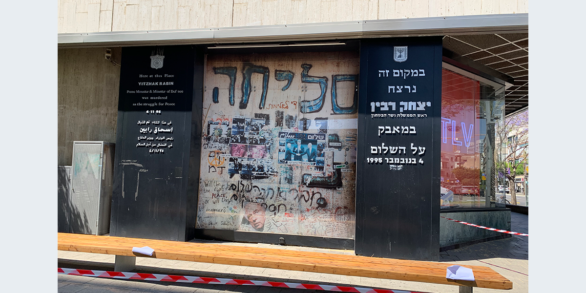 מיד אחרי שיצחק רבין נרצח, כל הקירות בכיכר היו עמוסים בגרפיטי, שלאט לאט איבד את המשמעות שלו", סיפר דוד טרטקובר, חתן פרס ישראל לעיצוב ומתכנן מתחם האנדרטה לזכר רבין. "אנשים באו וכתבו על הגרפיטי המקורי, האמוציונאלי, שנכתב מייד אחרי הרצח, את השם שלהם, וזה כבר לא סימל את מה שקרה במקום הזה. הדבר הראשון שעשיתי, על פי בקשתם של ראש העירייה דאז רוני מילוא ואלמנתו של רבין, לאה ז"ל, היה לנקות את הקירות ולשוות למקום מראה מכובד. זה אומנם פגע בספונטניות של הגרפיטי, אבל בין כה בשלב הזה הוא כבר איבד את האותנטיות שלו. החלטתי לעשות תערוכה, שהייתה בעצם שחזור של הגרפיטי המקורי מהימים הראשונים שלאחר הרצח בעזרת צילומים, כשהם מונחים על הקירות לצד קורות החיים של ראש הממשלה יצחק רבין".