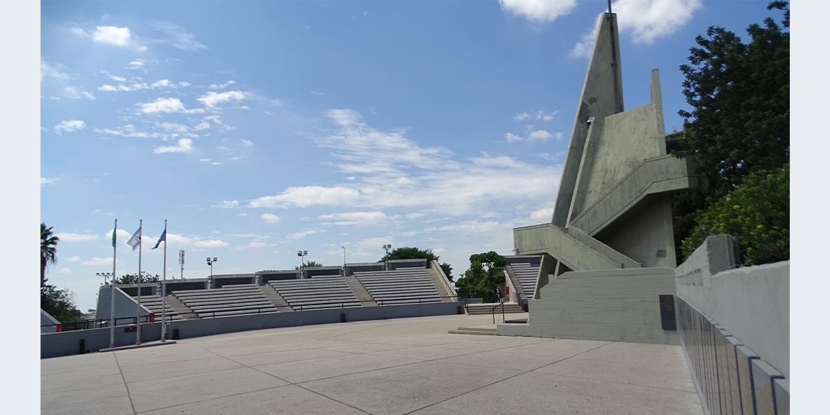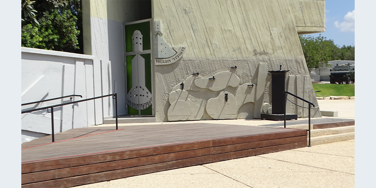 האנדרטה בנויה משני קירות בטון גדולים שביניהם נישא מגדל תצפית גבוה מבטון וצורתו משולש קטום. קיר הבטון הדרומי הארוך מפוסל בצורות עמקים, גבעות ומדבר – נופי הארץ. זהו קיר ה"גבול" המוליך אל חדר הזיכרון השוכן בקרקעית המגדל. על קירות החדר קבועות לוחיות שיש כהות ועליהן שמות הנופלים. על רצפת החדר מצויר משולש שחור, וממנו עולה מעין פסל עשוי חלקי תחמושת ורובים שקניהם מופנים השמימה. מהחדר אפשר לעלות למגדל תצפית ואחר כך לרדת אל הרחבה בתעלות קשר. הקיר הצפוני של האנדרטה בנוי בטון יצוק ובחזיתו, על לוח מתכת גדול, לוחיות מוזהבות ועליהן שמות הנופלים. מעל לוח המתכת סמל מג"ב והפסוק: "ונתתיך לעם הזה לחומת נחושת בצוּרה, ונלחמו אליך ולא יֻכלו לך" (ירמיהו טו, כ), לפי אתר יזכור.