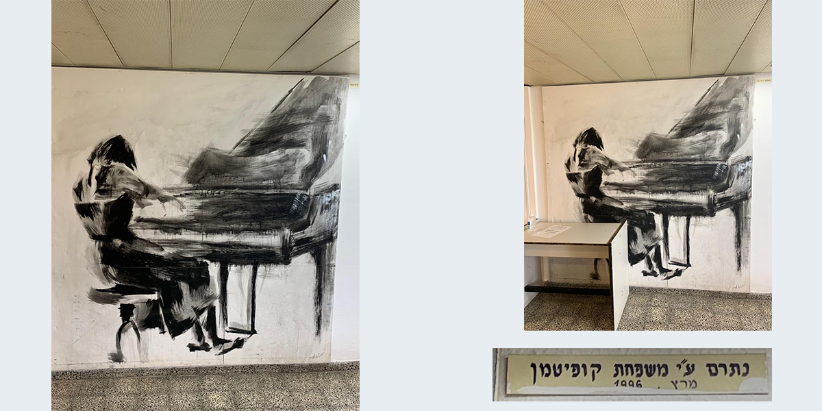 משפחתו של המלחין והפרופסור מן האקדמיה למוסיקה ולמחול בירושלים מרק קופיטמן תרמה את הציור. את הציור ציירה מאיה קופיטמן (בן־עמי) בתם הגרפיקאית, שלמדה בתחילה באקדמיה והייתה לפסנתרנית. לימים החליטה להתמקד בציור ובגרפיקה ולמדה ב"בצלאל". בציור זה היא ציירה את עצמה מנגנת בפסנתר הכנף שלה. היה זה חלק מתרגיל בעת לימודיה ב"בצלאל" – התלמידים נתבקשו ליצור ציור במשך 24 שעות וזאת התוצאה.