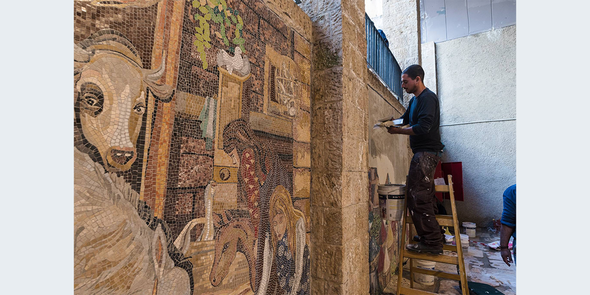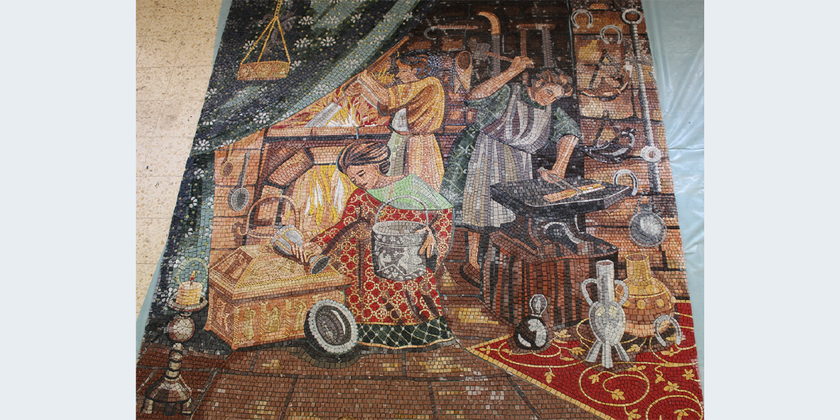 בשנת 2025 תוקן הפסיפס שמתאר את חנות הכלי הנגינה בידי האמנית רחל בן־אשר; הושלמו אבנים שנפלו ממנו, והפסיפס הותקן על מסגרת ונקבע שוב במקומו.