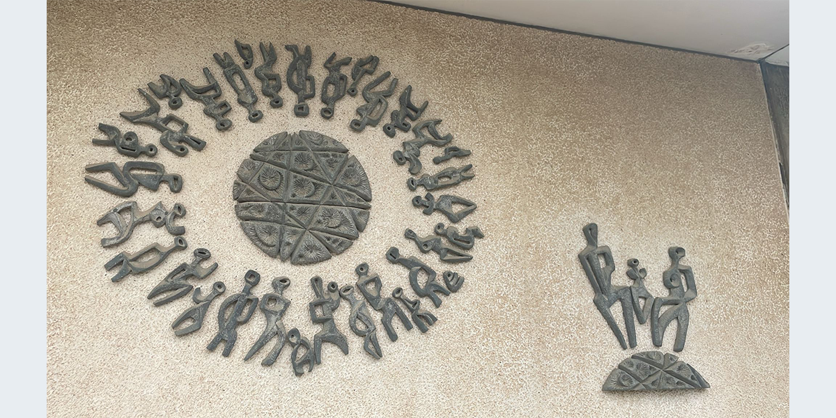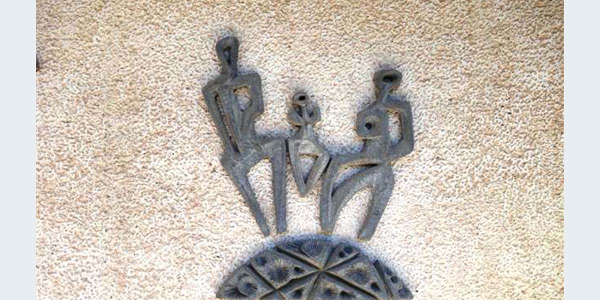 התבליט בכניסה המערבית של חדר האוכל של הקיבוץ. ביצירה דמויות אנושיות רוקדות במעגל.
