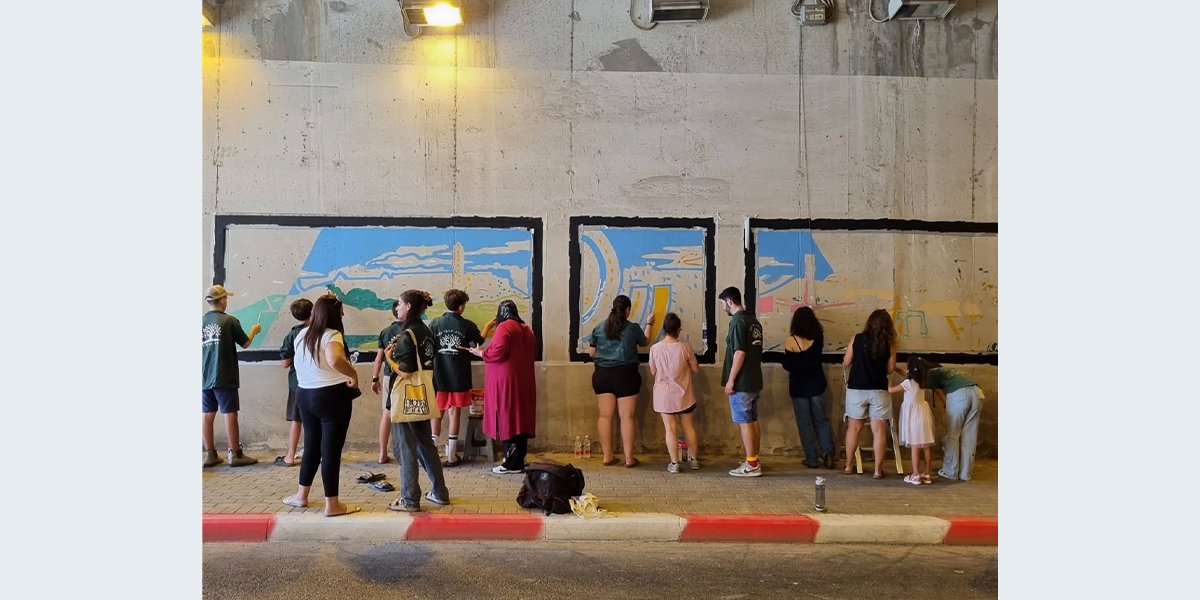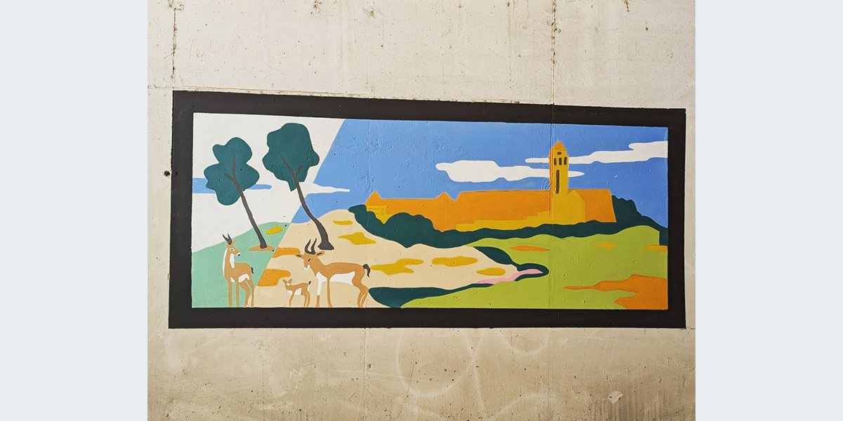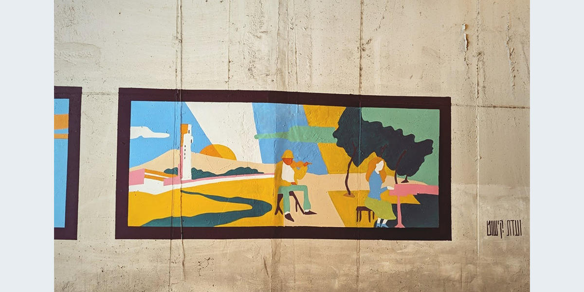 הציור נעשה עם הקהילה בגבעה הצרפתית. "במפגש מרגש עם תושבי הקהילה הקשבנו לסיפורים, זיכרונות ורעיונות שציירו את הנוף הייחודי של השכונה. מתוך השיח צמח ציור שמחבר בין נקודות הציון המוכרות של האוגוסטה ויקטוריה, המגדל של האוניברסיטה העברית בהר הצופים, עצי האורן הנטויים בראש הגבעה, לצד דמויות של נערה מנגנת בפסנתר ואיש עם כינור. אליהם מצטרפים גם בעלי החיים המקומיים, ובראשם הצבאים, וגם סמל רשות השידור שהותיר את חותמו על האזור. הכול נארג יחד בצבעוניות עשירה ועוטפת, שמביאה שמחה גדולה למנהרה ולמרחב כולו", מתוך הפייסבוק של ועדת קישוט.