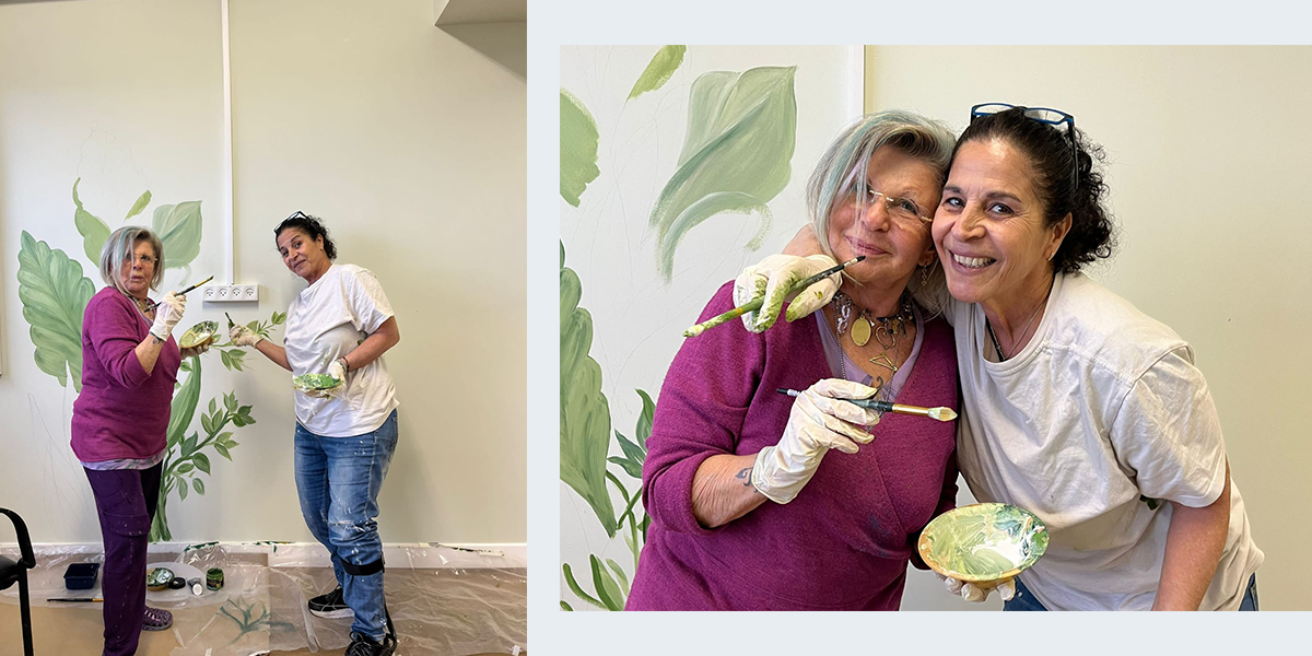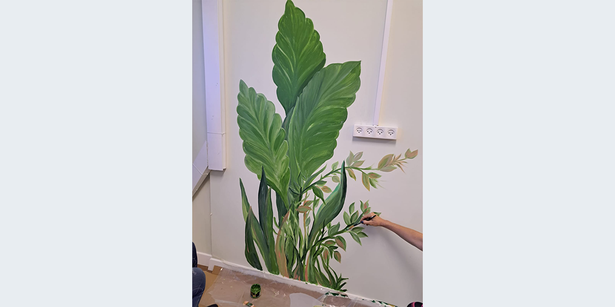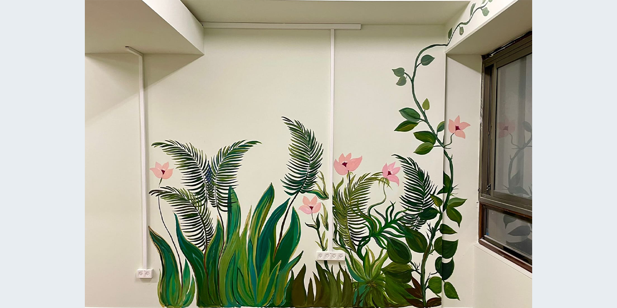 האמנית ציירה את הצמחייה בחדר הממוקם בקומה גבוהה ומוארת כדי שהפצועים ירגישו קצת בתוך הטבע.
