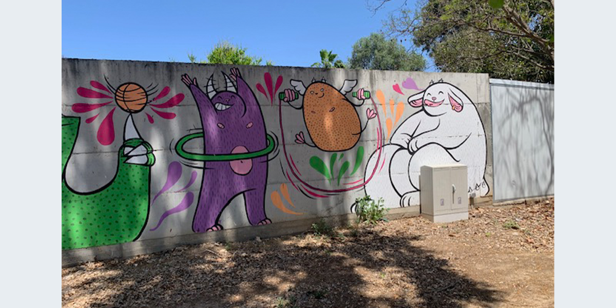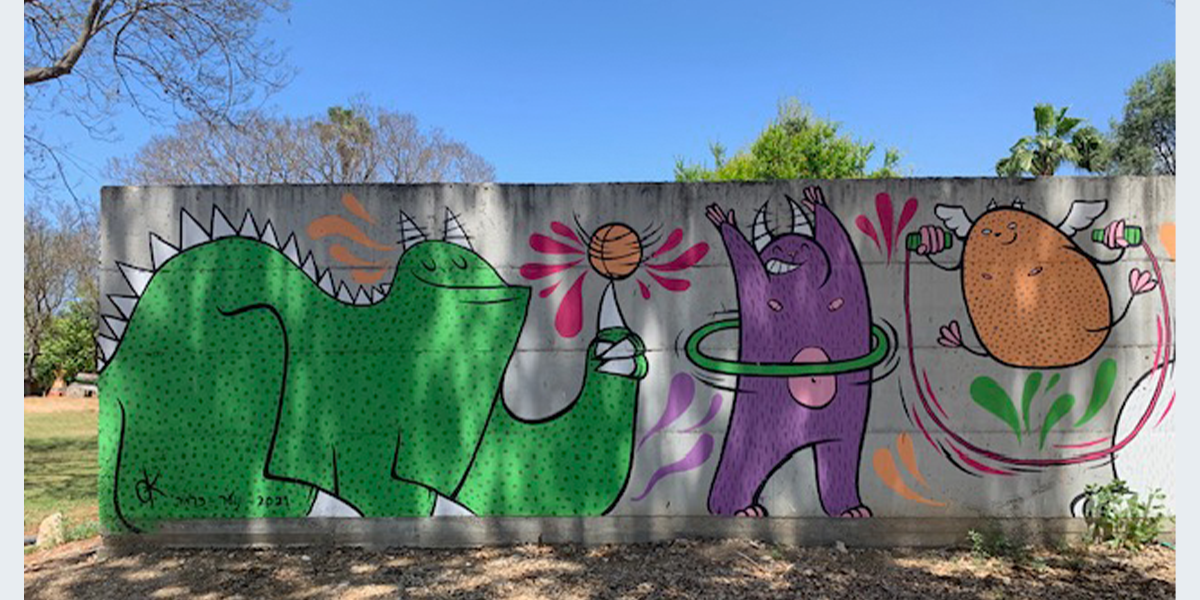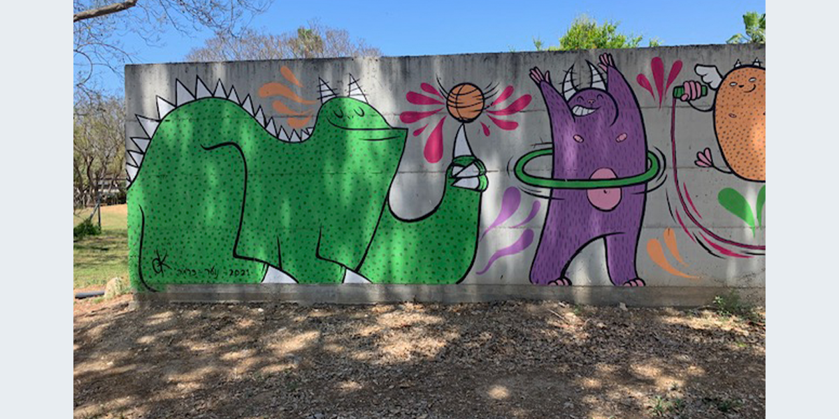 את הציור ציירו בני הנוער בכרמיה בשיתוף עם האמנית אופל קודוביצקי, בת הקיבוץ.