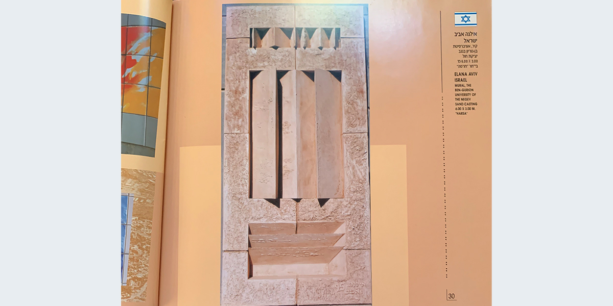 הפסל שנבנה במסגרת הביאנלה לקרמיקה 1995 הותקן על קיר בניין האחמי"ם באוניברסיטת בן־גוריון.