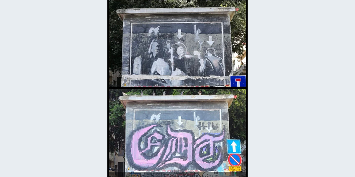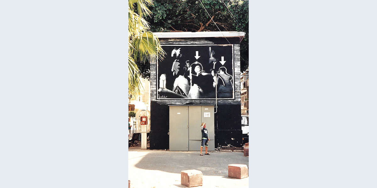 את הציור צייר האמן יגאל שתיים בעקבות תצלום שפורסם בשער עיתון ידיעות אחרונות, תצלום של רגע הרצח (שימו לב לעיגולים סביב הדמויות ולחיצים המסמנים אותם). התצלום נלקח מהסרט שצילם רוני קמפלר. במשך השנים פגעו כל מיני גורמים בציור, ובשנת 2025 מישהו כיסה אותו בגרפיטי. האמן פתח במיזם של גיוס המונים כדי לאסוף כסף ולשחזר את הציור החשוב.