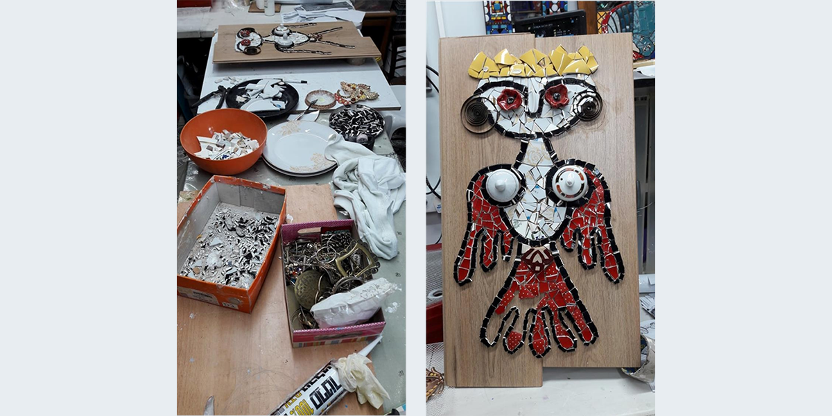 הדבקה, פסיפס, ציור, ציור על אריחים