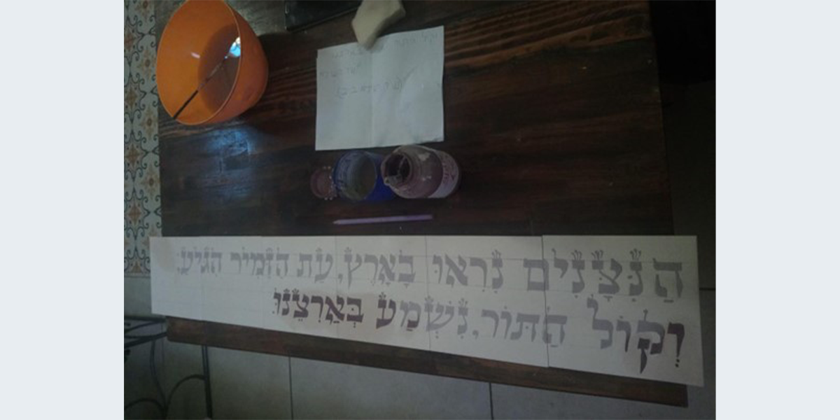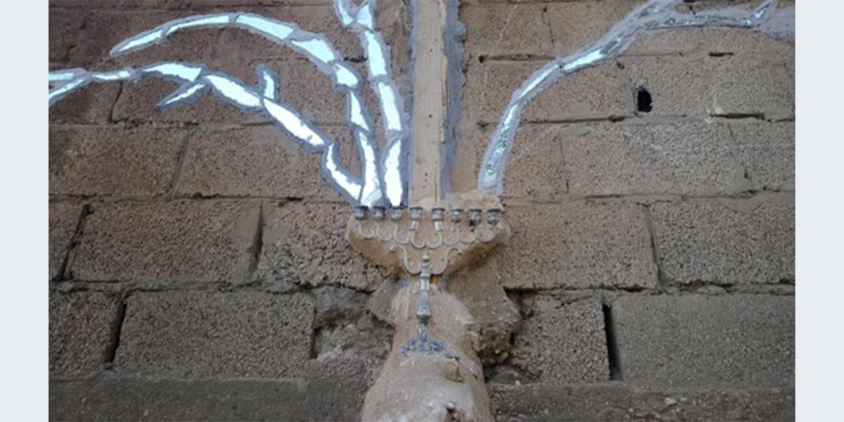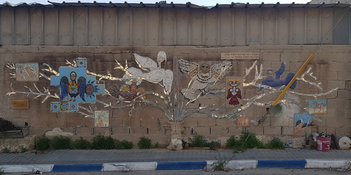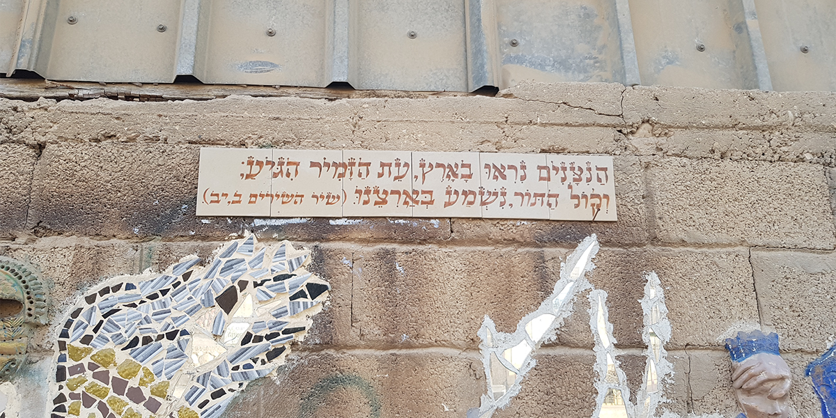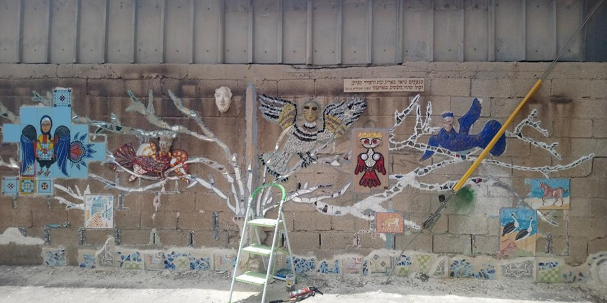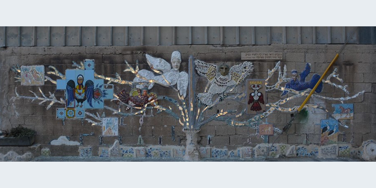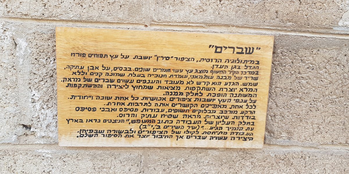 לדברי האמנית, במיתולוגיה הרוסית הציפור "סירין" יושבת על עץ תפוח פורח הגדל בגן העדן. במרכז הקיר החשוף מוצג עץ עשוי חומרים שונים. בבסיס, על אבן עתיקה שהיא שריד ממבנה עות'מאני, עומדת חנוכייה בעלת שמונה קנים (ללא שַׁמָּשׁ). הגזע הוא קרש לא מעובד והענפים עשויים שברי מראה. המראה משקפת את המציאות שמחוץ ליצירה וההשתקפות המשתנה הופכת לחלק ממנה. על ענפי העץ יושבות ציפורים אנושיות – כל אחת שונה וייחודית ולהמאפיינים הקושרים אותה לתרבות אחרת. ברקע בלוקים חשופים, עבודות פסיפס ואבני פסיפס בודדות שיוצרות מראה שטיח עתיק והרוס. בחלק העליון של העבודה כתוב הפסוק: "הניצנים נראו בארץ עת הזמיר הגיע" (שיר השירים ב, יב). העבודה מתייחסת לקולן של הציפורים ולבשורה שבפיהן. היצירה עשויה שברים, אך החיבור יוצר את הסיפור השלם.