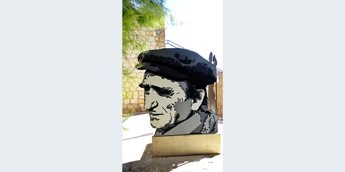 את הפסל יצר הפסל יואב בן דב, צילמה את הדיוקן קטי ראף. על הקיר נכתבו אמירות של איצ׳ה ממבוש.