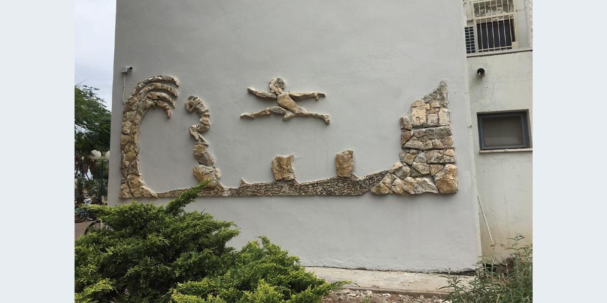היצירה של רפאל רפפורט הייתה קבועה על מקלט ולימים הועברה לקיר בית המוסדות.