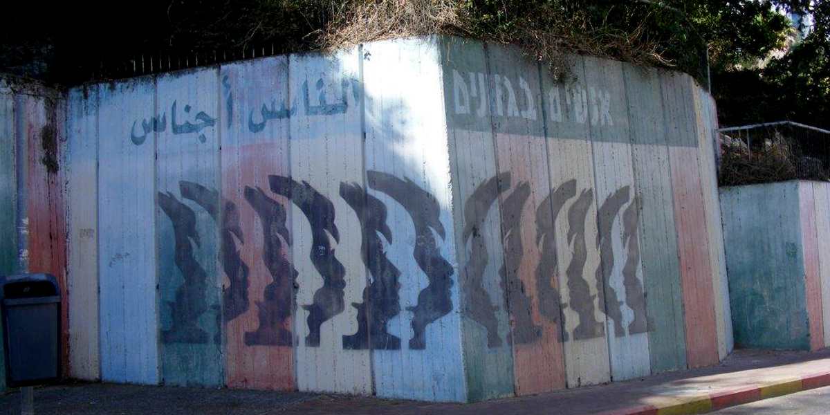 ציור על קיר תומך במפרץ תחנת אוטובוס ומפגש דרך ונתיב מדרגות. השבלונה הכוללת פרופילי פנים בצבעי שחור ולבן צבועה על רקע בצבעי הקשת ולצידו כתוב "אנשים בגוונים". את הציורים עשו ילדי בית ספר.