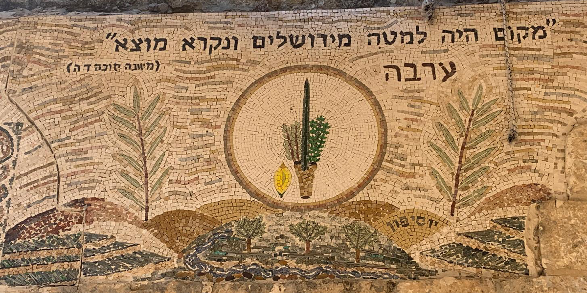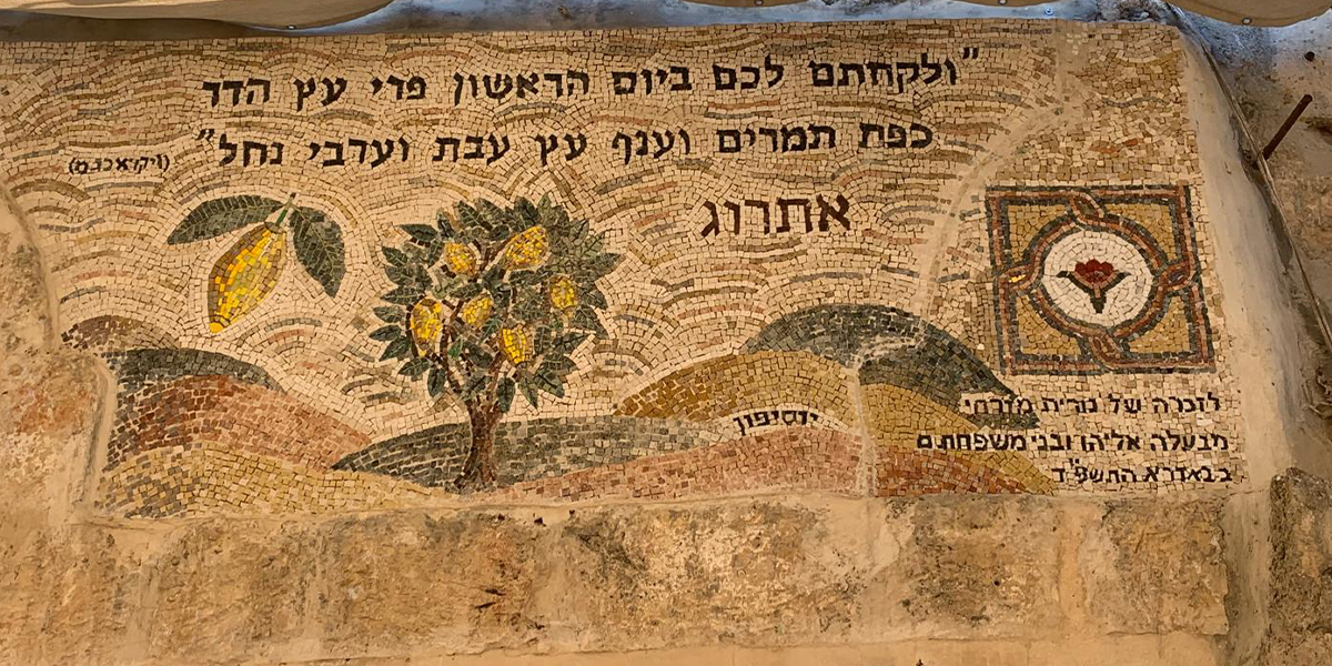 האתרוג – בפסיפס מוצג עץ האתרוג ואתרוג מוגדל.