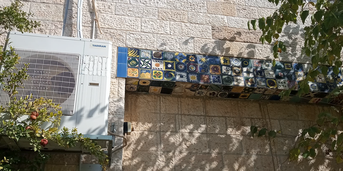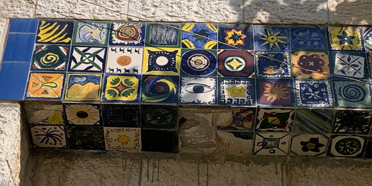 את האריחים הכינו תלמידות בית הספר בהנחיית המורה לאמנות.