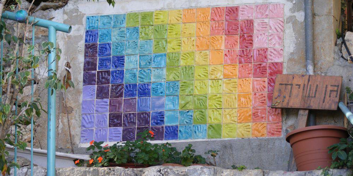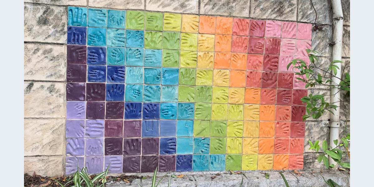 הטבעות כפות ידיים של ילדים על אריחי הקרמיקה בשלל צבעי הקשת נקבעו על גדר השביל במעלה המגרש. עם השנים קושט גרם המדרגות בעוד ועוד יצירות.