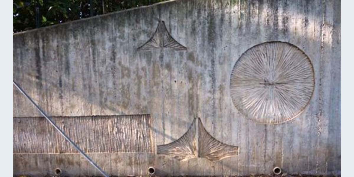 לקיר, שאותו עיצב אילון כהן אדריכל המבנה, יש שני צדדים – האחד עם צורות מופשטות, האחר הוא אנדרטה לזכר המצור שהטילו הבריטים ב־1945 על קיבוץ גבעת חיים הסמוך בעקבות קליטה מהירה של מעפילי ספינות ובשל חיסול מכ"מים בריטים לאורך החוף. בתגובה החליטו ביישוב לארגן מצעד גדול שייצא מעין החורש ויפרוץ את המצור. הבריטים ירו על הצועדים, 42 איש נפצעו ושמונה איש נהרגו, ובהם שניים מעין החורש. בקיר שילב האדריכל שני סליקים מברזל. אחד מהם היה שמור בקיבוץ ואת השני מצא במהלך העבודות להקמת אולם התרבות. לדבריו, הוחבאו סליקים נוספים באולם התרבות וסביבתו, אך הדבר נשמר בסוד, לפי מיכאל יעקובסון.