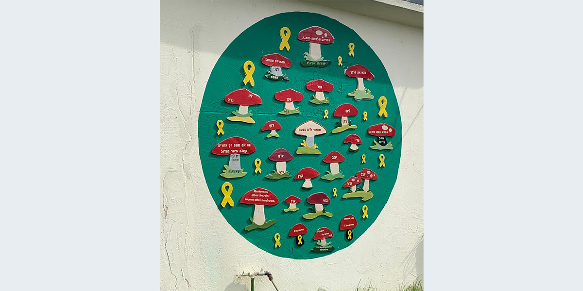 הפסיפס של מוגלי מספר הג'ונגל נעשה לזכרו של אלמוג שלום (2004–2024), בוגר בית הספר. הוא נולד וגדל בקיבוץ חמדיה, ב־15 באוגוסט 2023 התגייס לצה"ל ושירת בחטיבת גבעתי.ב־10 ביוני 2024 במלחמת חרבות ברזל נפל בקרב. הוא הובא למנוחות בבית העלמין הצבאי בהר הרצל.