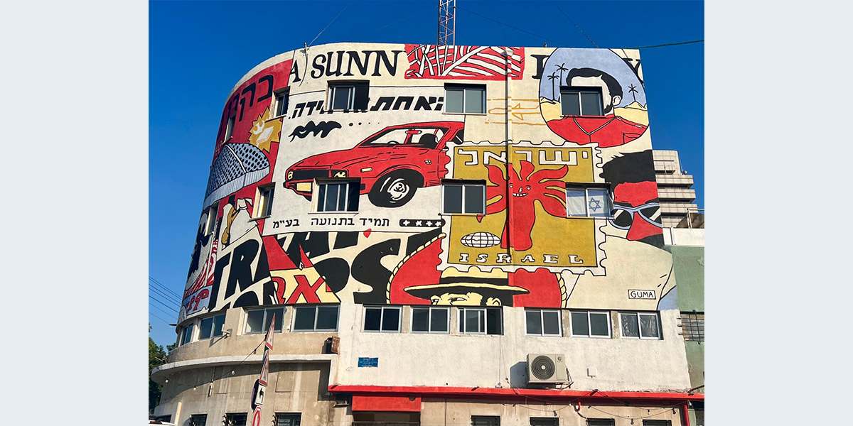 האמן אלון גומא החותם על יצירותיו בכינוי Guma, חי ועובד בארה"ב. כדי לבמע את הציור הזה היה אמור להגיע לארץ, אך בגלל המלחמה זה לא צלח. הוא הנחה מרחוק צוות אמנים שביצעו את הציור.