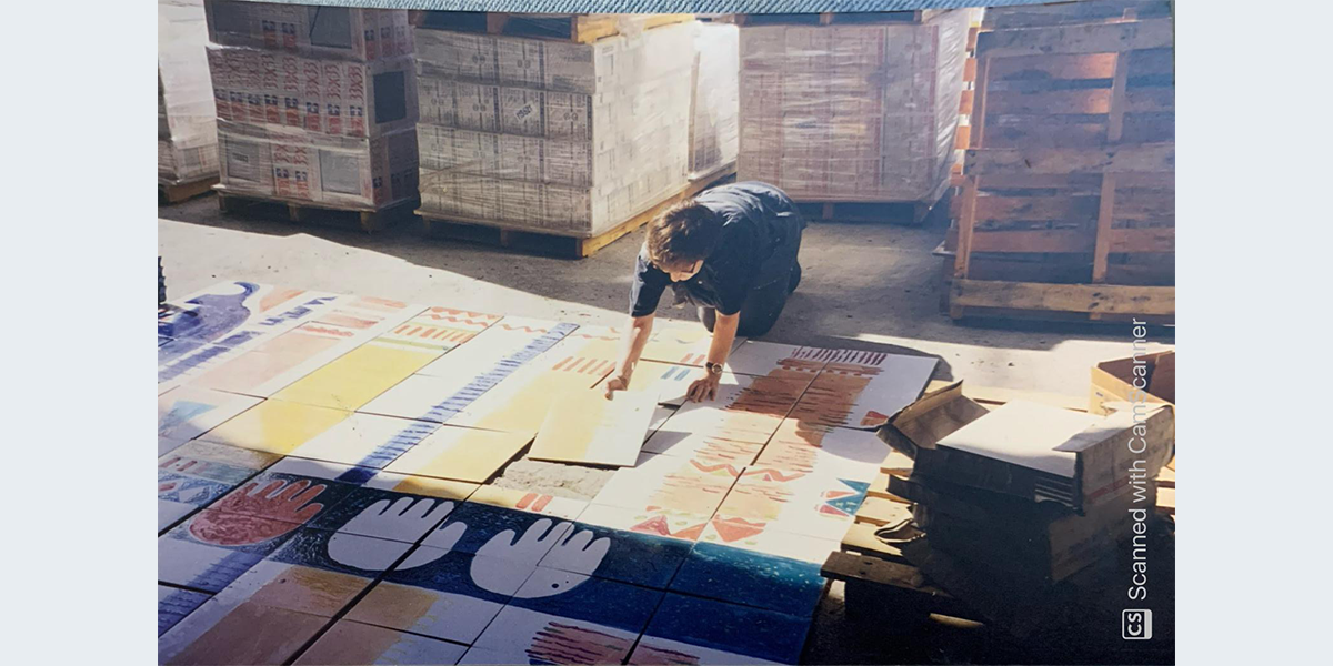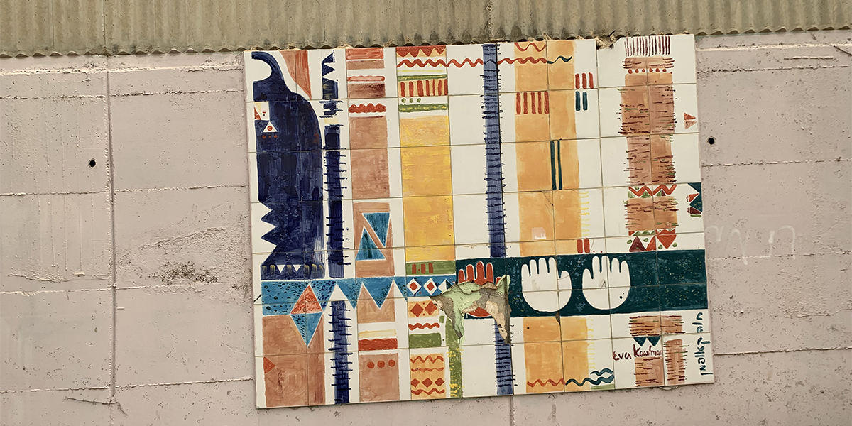 האמנית יצרה את הקיר הזה בביאנלה לקרמיקה בשנת 1998. הביאנלה בשנה זו הייתה המשך לאירועים אלה החל משנת 1991. במשך כחודש ימים עבדו 7 אומנים על יצירותיהם במפעל "נגב קרמיקה" בירוחם – שם מייצרים אריחים לבתים. האומנים ציירו על האריחים שמייצרים בירוחם ואחר כך הם עברו עוד שריפה במפעל. החיבור בין האמנים, החומר והמקום (הנגב) בא לידי ביטוי בעבודותיהם. כל הקירות מעטרים את שד' אצ"ל (מול אצטדיון טרנר).
