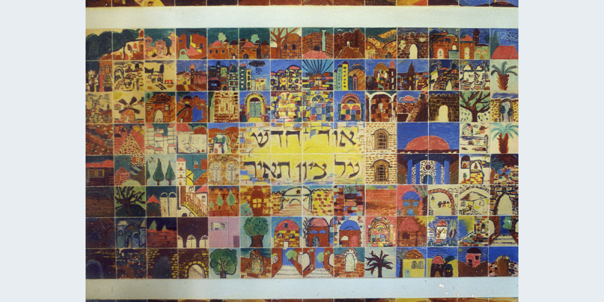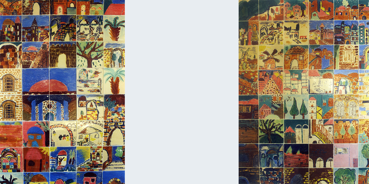 על האריחים ציירו התלמידות בבית הספר בהנחייתה של האמנית טל לוי במסגרת "אמן" – ניידת אמנות למגזר החרדי.
