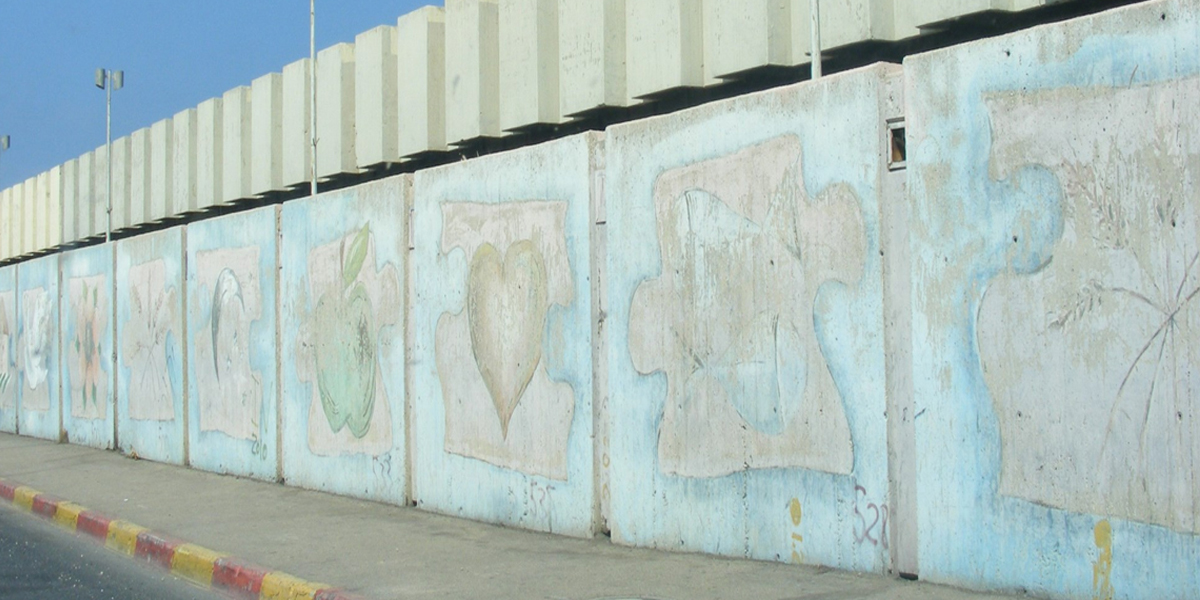 ציור קיר על גדר תחנת אגד בת גלים, ובו נראים חלקי תצרֵף ובמרכזם ציורים של לב, תפוח, עלה, דגים ועוד. את הציור יצרו תלמידי בסמ"ת בהדרכת גליה אבני.