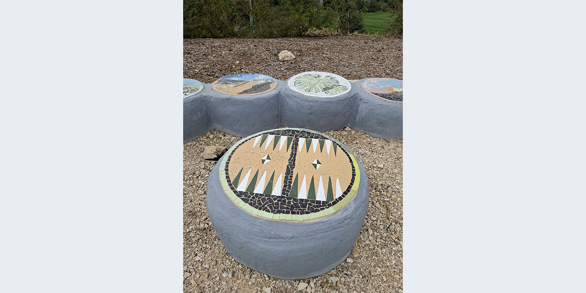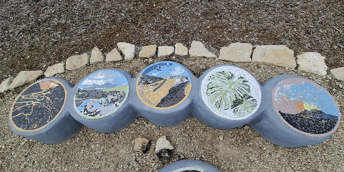 את מיזם הפסיפסים יזמה והובילה מירב אימו של ירדן והנחתה האמנית דליה גרוסמן. ביצירת הפסיפסים השתתפו בני המשפחה וחברים. הרעיון היה לאסוף מאלבומיו של ירדן 25 תצלומים – כמספר שנות חייו. כל אחד מהתצלומים מאיר פן אחר בחייו: תחביבים שנהנה לעסוק בהם, מקומות שטייל בהם, צמחים שאהב – כך ביקשה אימו מירב לבטא משהו מאורחות חייו וחוויותיו. במרכז הגורן יש בור בישול בסיר פויקה – עוד תחביב של ירדן.
