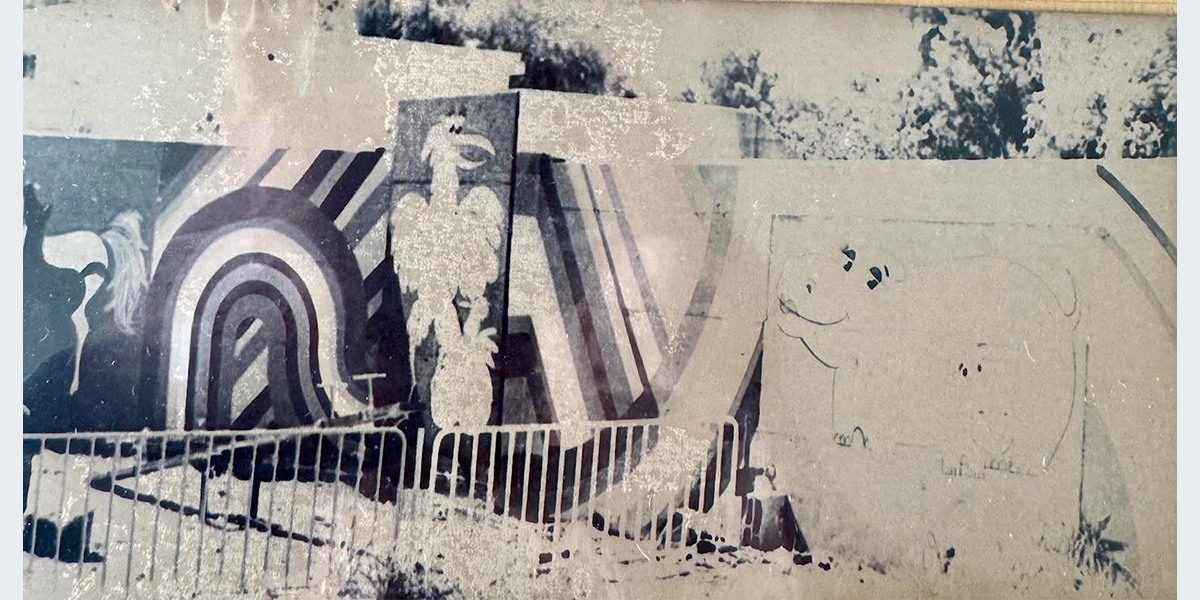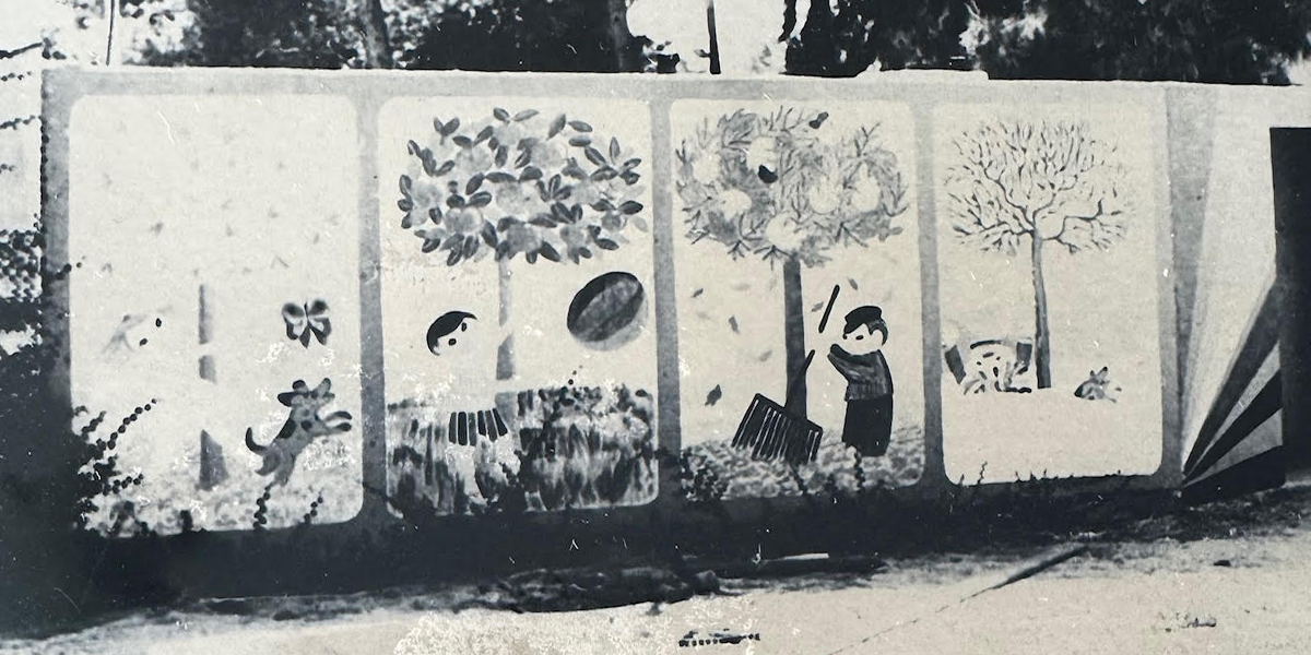 את הציורים על המקלטים צייר האמן האוסטרלי Richard Jeziorny, הידוע בכינויו דיק. הוא הגיע לקיבוץ דן כמתנדב אחרי שפרצה מלחמת יום הכיפורים ושהה שם כמה חודשים. במהלך השנים חברי קיבוץ ובני נעורים עם נטייה אמנותית ניקו את הציורים וצבעו אותם מחדש. שנים הציורים נשמרו, אך בסופו של דבר נמחו.