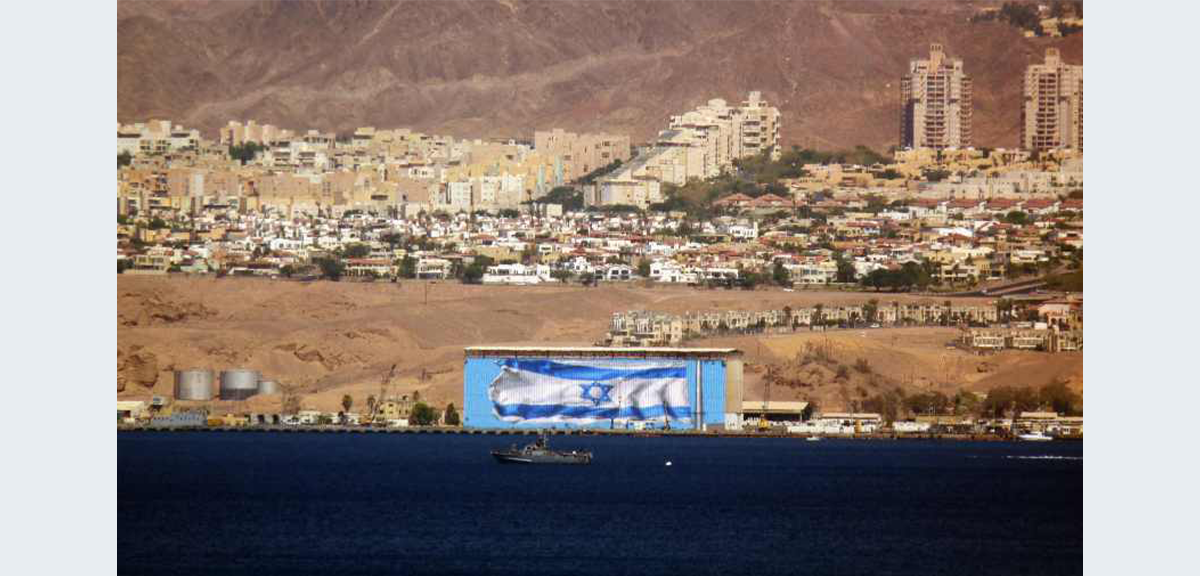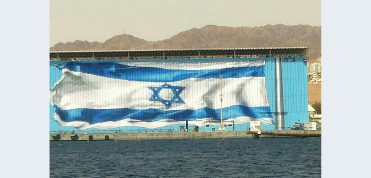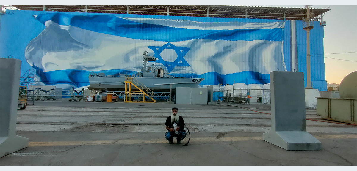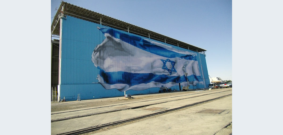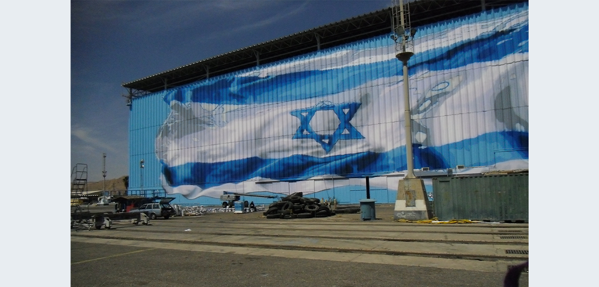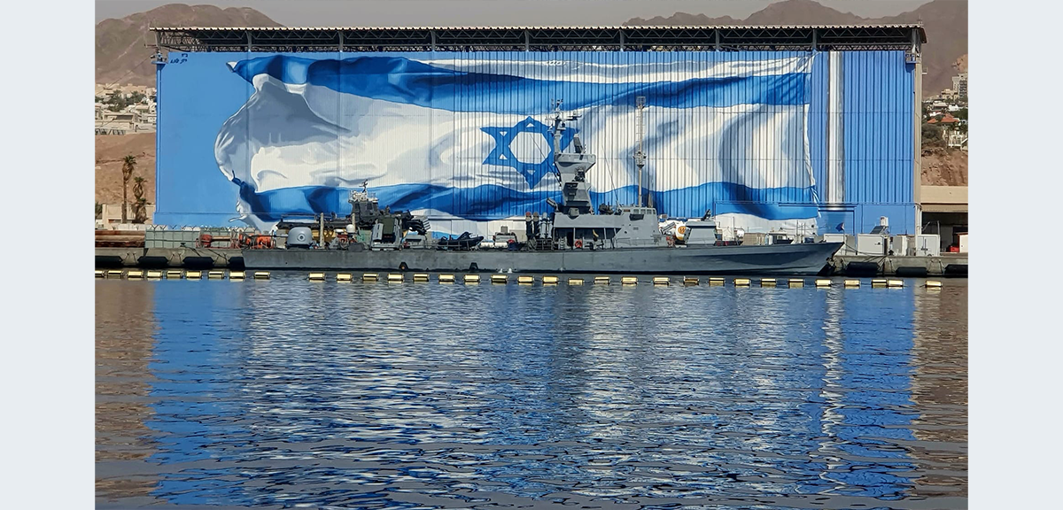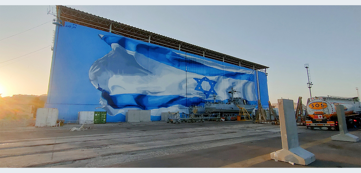 האומן האילתי רוני פלוא צייר את דגל ישראל על ההאנגר בבסיס חיל הים, דגל שצויר לראשונה בשנת 2013, ונפגע מפגיעת כטב"ם.