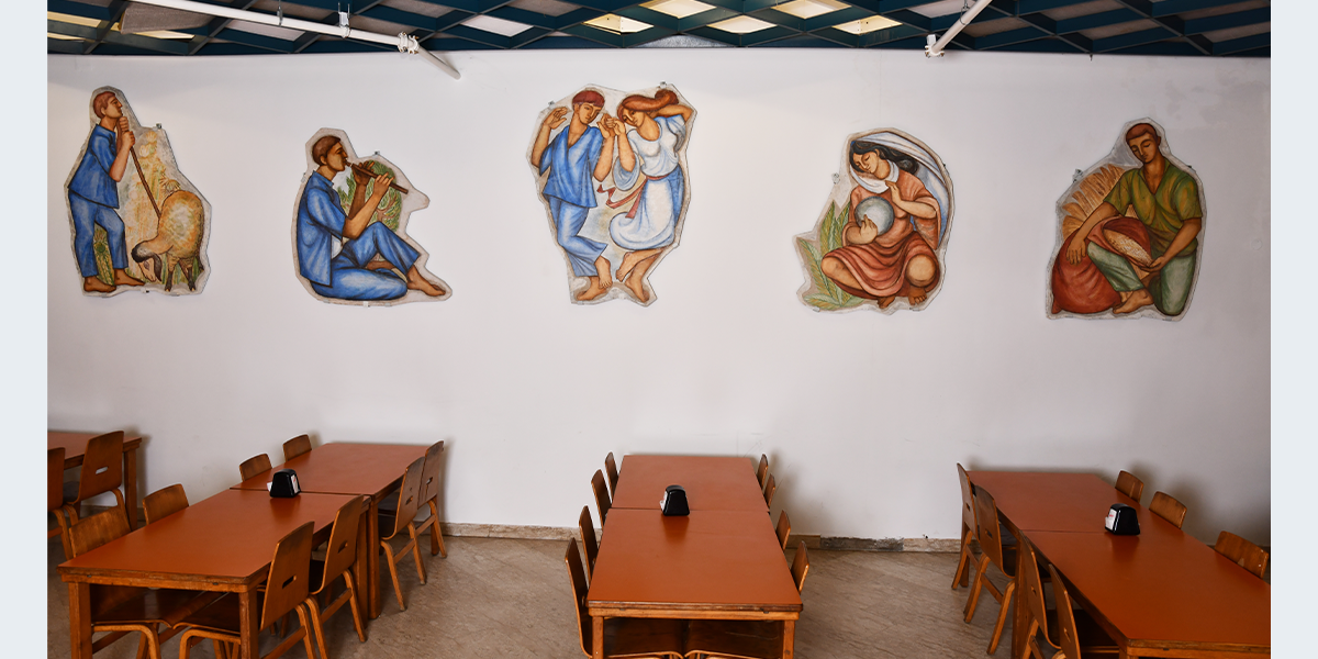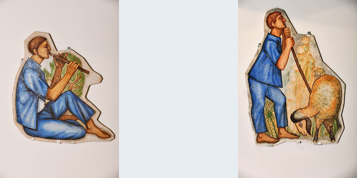 מצב השתמרות היצירה: ביוזמת סקר אמנות הקיר וקיבוץ עין המפרץ שומרו היצירות בחורף 2023 בידי המְשמרות הילה מסינגר וקטי קנבסקי.