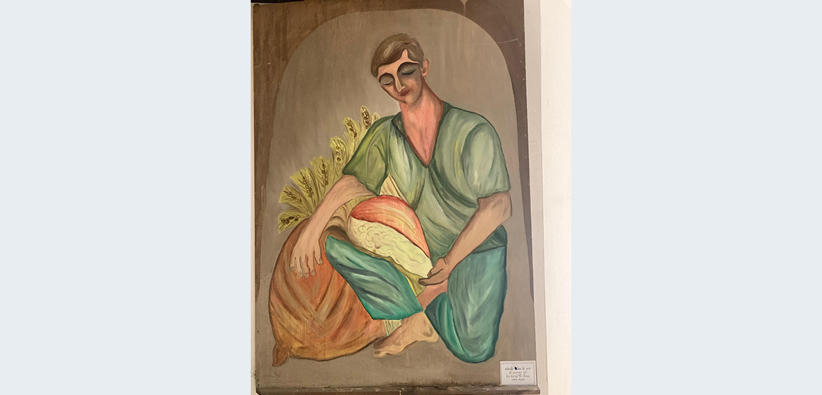 בשנות החמישים נבנה חדר אוכל חדש בעין המפרץ ושני הציירים שרגא ווייל ושמואל כץ, שחזרו מהשתלמות בטכניקת פרסקו בפריס, הוזמנו לצייר ציור על קיר פנימי באורך כ־15 מטר. הם ציירו תשע דמויות נפרדות ברוח הראליזם הסוציאליסטי: גברים ונשים מלאי־עוז ויופי העוסקים בחקלאות: דייג ורשת, קוטפת תפוזים, הרועה והכבשה.