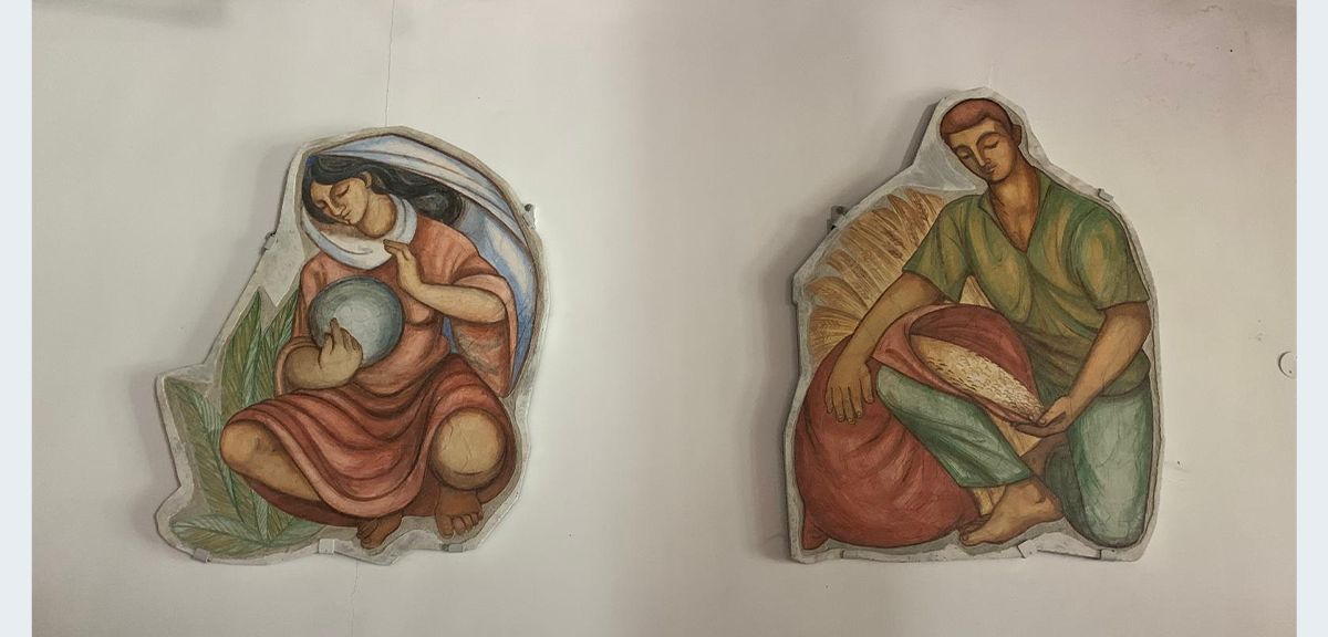 בשנות השמונים במהלך שיפוץ מבנה חדר האוכל נהרסו חלק מהציורים. חבר הקיבוץ לשעבר מתי להט דרש להפסיק את הריסת הקיר וניסה להציל את הציורים שכה אהב בילדותו. לדבריו: "פניתי גם למחלקת הרסטורציה במוזאון ישראל. מאחר שהזמן שהוקצב לכך ע"י הקיבוץ היה קצר מאוד, נאלצתי לבצע את העבודה בעצמי ללא כל הכשרה מוקדמת. 'המצאתי' שיטה פרימיטיבית ותוך מספר ימים הסרתי את הציורים שנותרו. שיטחתי אותם בסלון ביתי עם הפנים לרצפה ויצקתי על גבם בטון מחוזק ברשת ברזל כך שנוצרו לוחות בטון בעובי כ־5 ס"מ שניתנים לניוד, תלייה וכו'". כיום מקטעי היצירות ששרדו מאוחסנים בקיבוץ עין המפרץ.