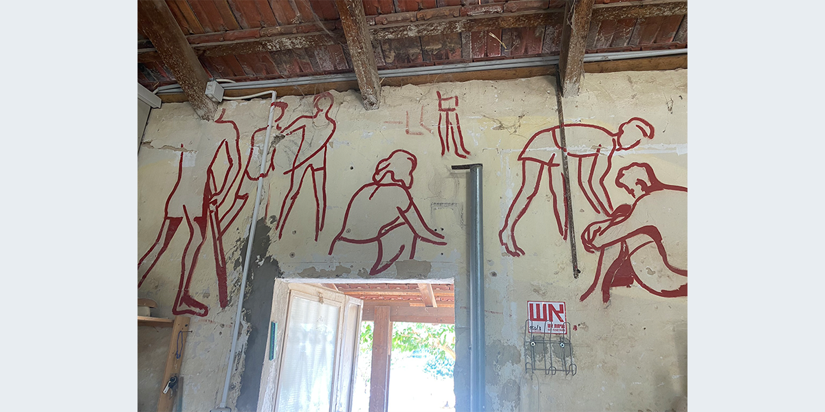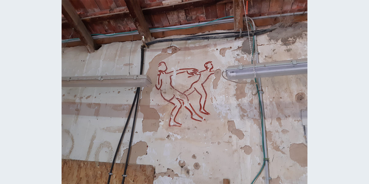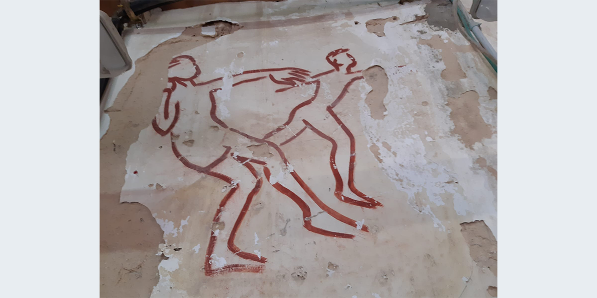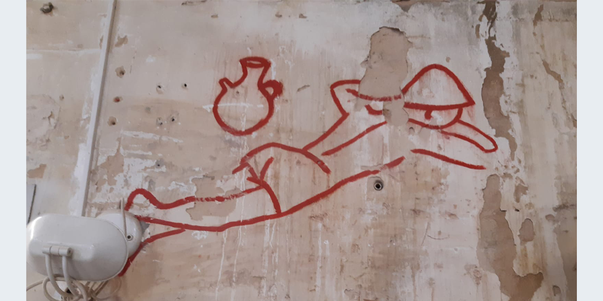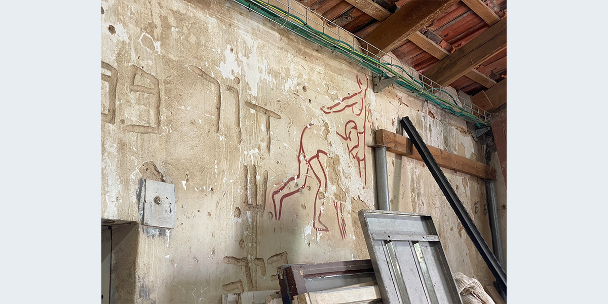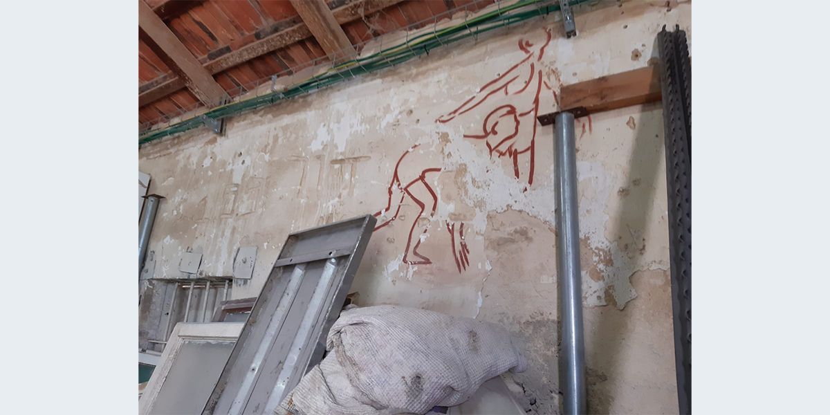 הציור צויר בתחילת שנות השישים – אז שימש האולם את חברת הילדים. לימים חבר קיבוץ שרצה לייפות את הציור שדהה, עבר עליו בצבע…