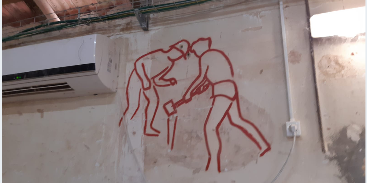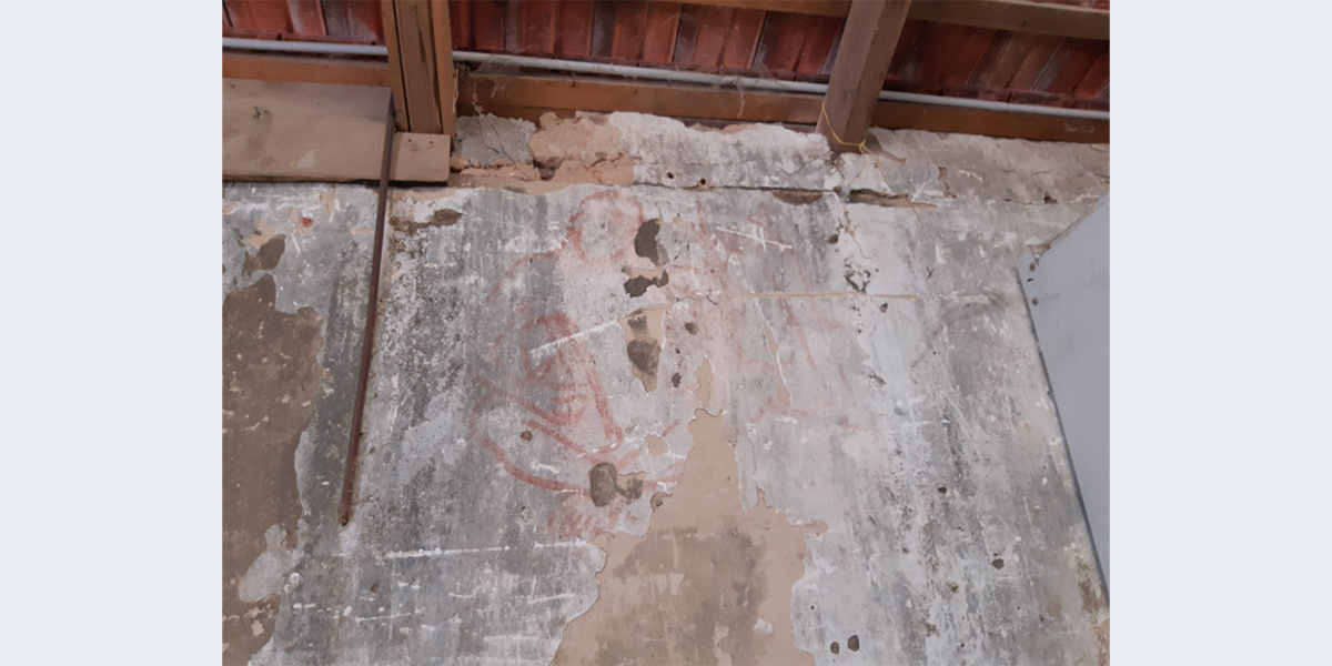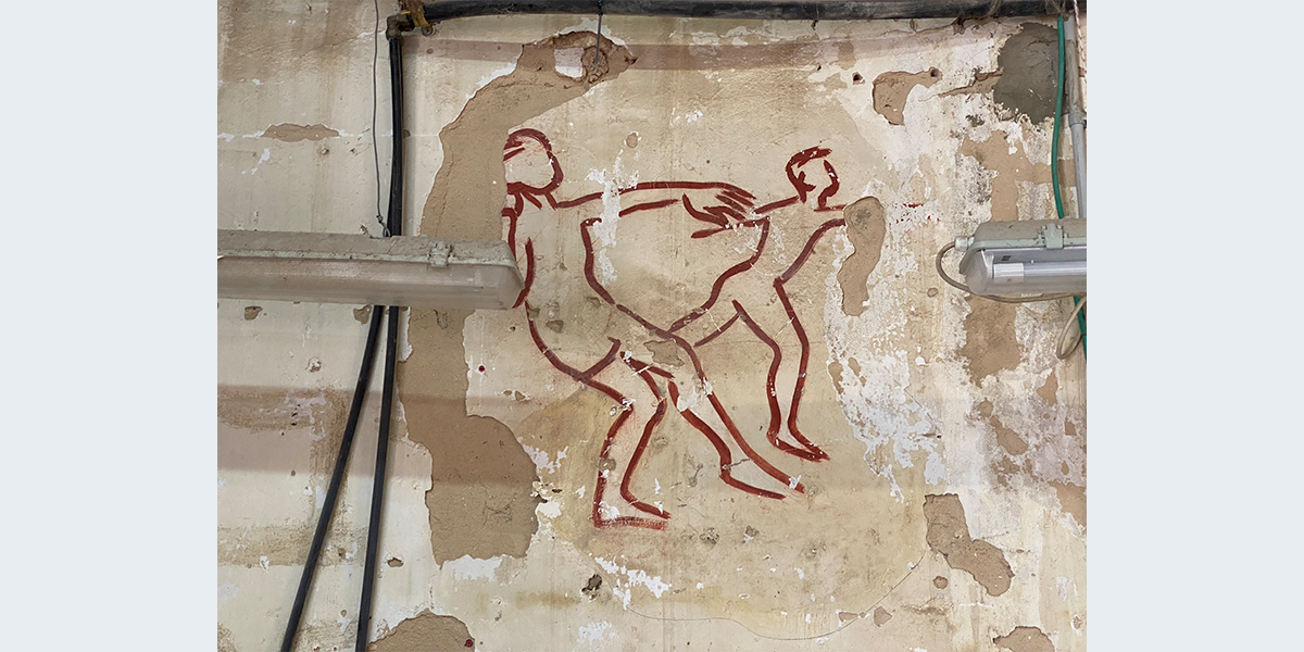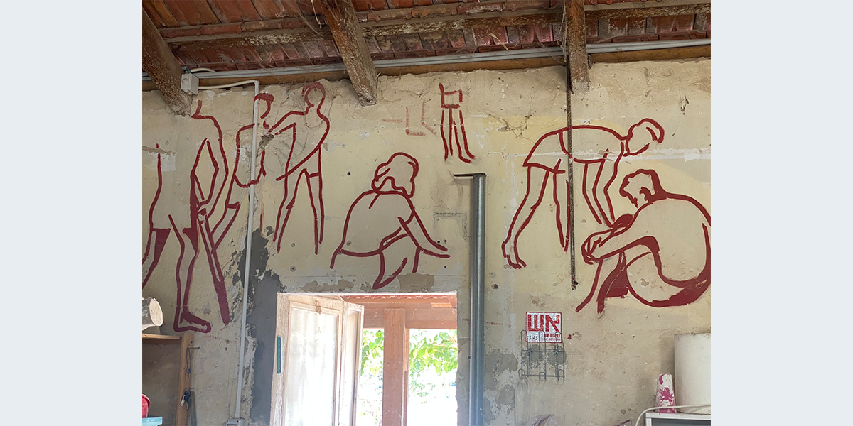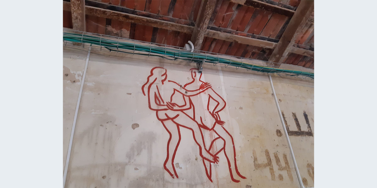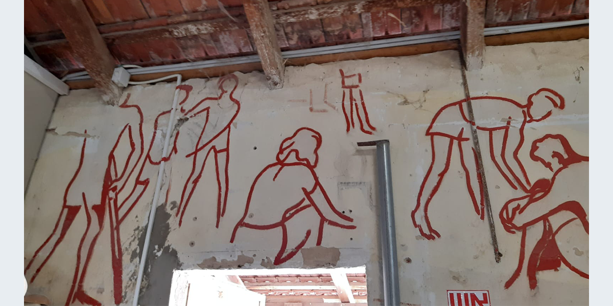 הציור צויר בתחילת שנות השישים – אז שימש האולם את חברת הילדים. לימים חבר קיבוץ שרצה לייפות את הציור שדהה, עבר עליו בצבע…