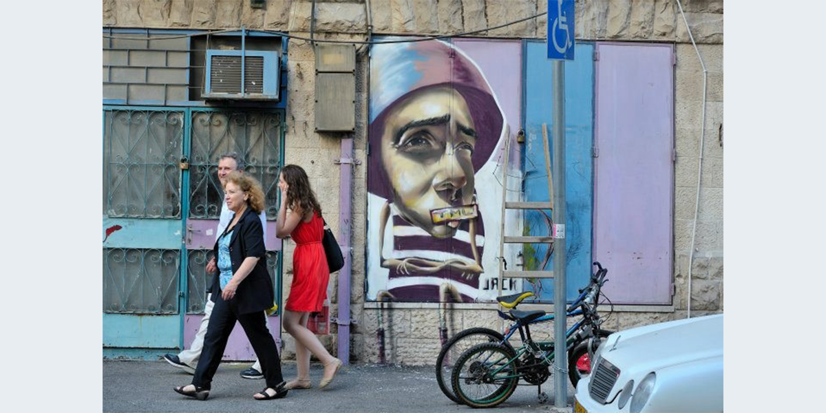 המאייר רם שחף חתם על ציוריו ברחוב בכינוי JACK TML.