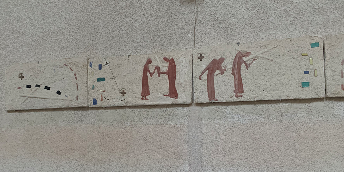 כשהאמנית מוד פרידלנד התגוררה בשכונת עין כרם בירושלים, היא התיידדה עם הנזירות במנזר, וכך הציעו לה ליצור בקרמיקה תבליט של דרך הייסורים.