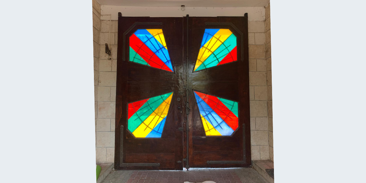 בניין טחנת הקמח לשעבר; דלת הכניסה, מנזר השתקנים