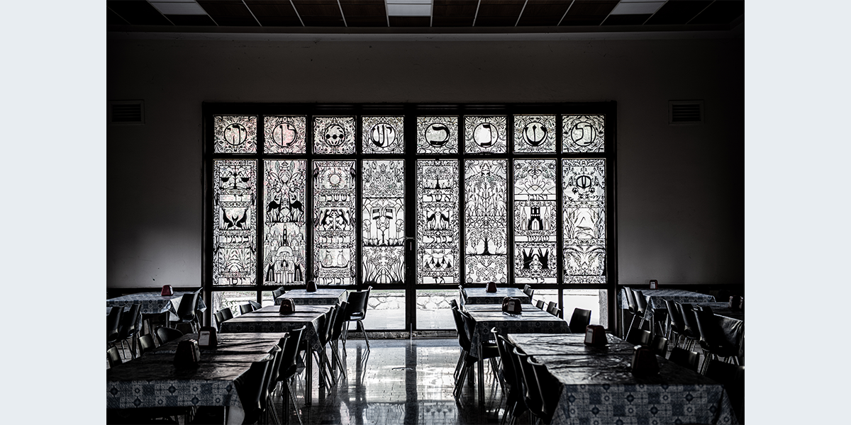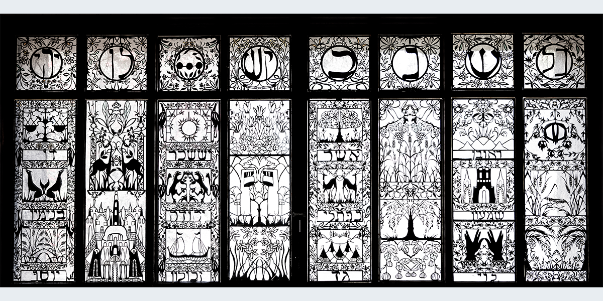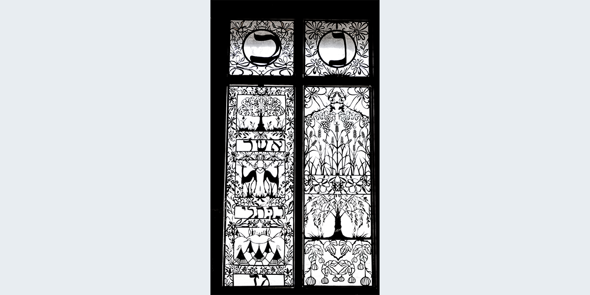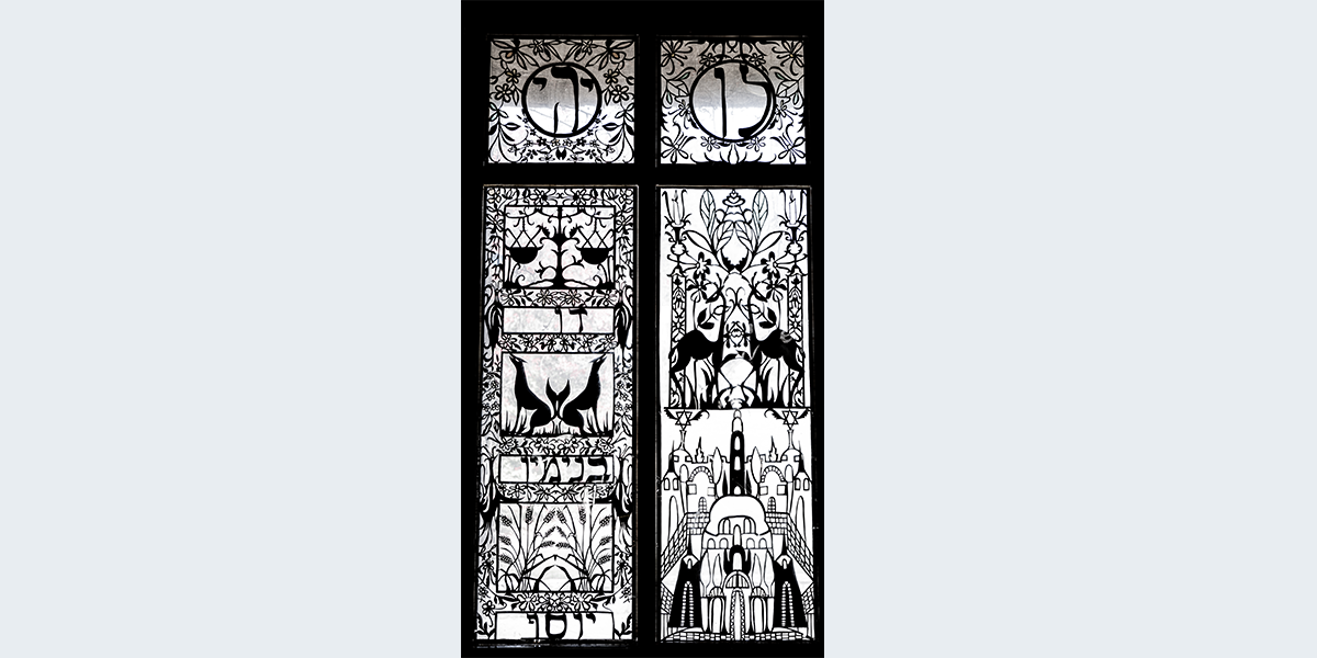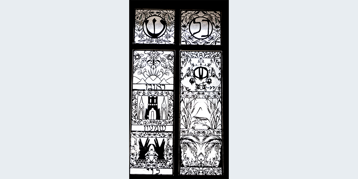 מרים אגוזי, האמנית חברת קיבוץ גיניגר, יצרה את המגזרת עם צלופן צבעוני, ועם השנים הצבעים דהו.