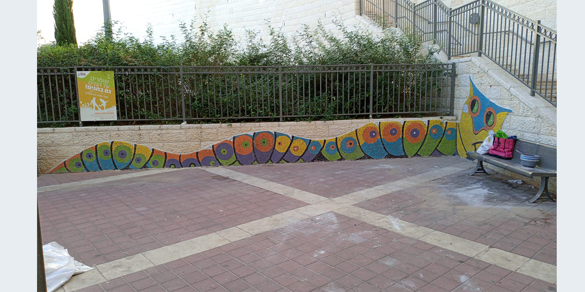 את הפסיפס עשו משפחות בשכונת הר נוף, דיירים בדירות של עמותת "עלי שיח" בזמן הקורונה.