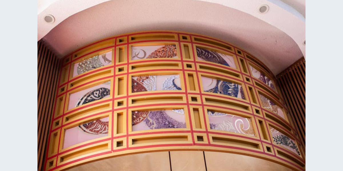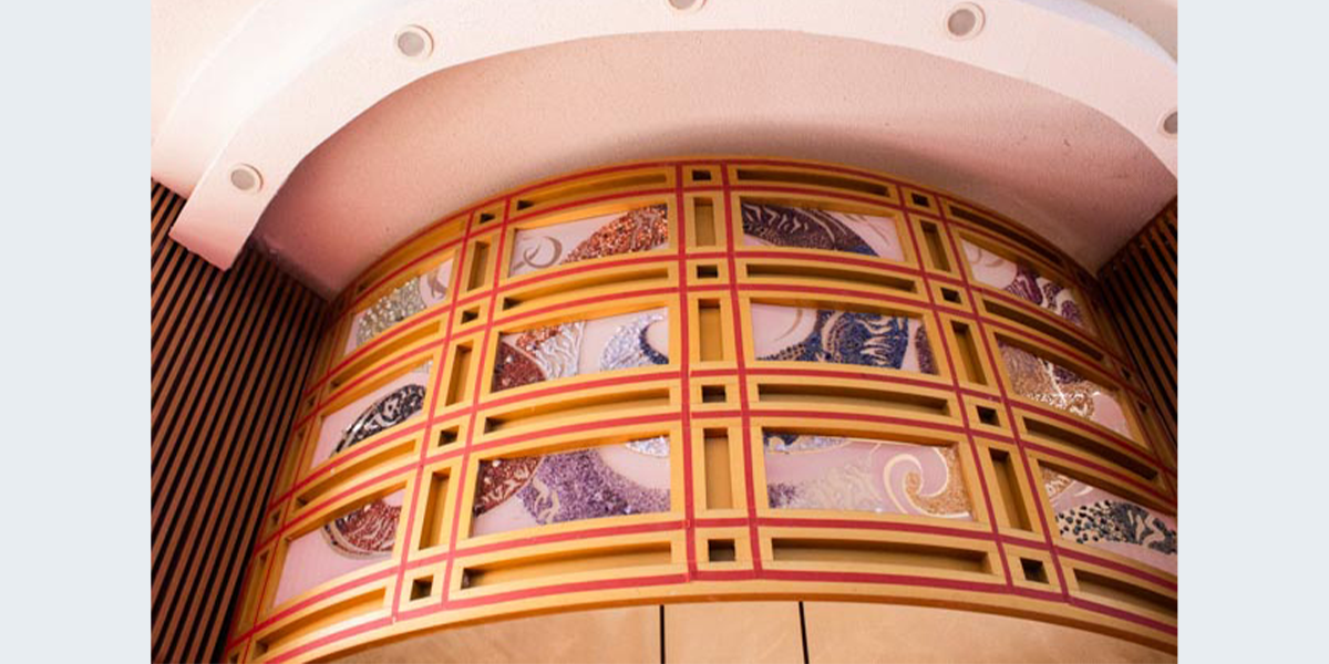 בשנות השבעים כשנבנה בית הכנסת, יצרו את תבנית החושן בנחושת מעל ארון הקודש. ב־2011 שילבה האמנית מוריה אביחיל את הפסיפס שלה בתבנית הקיימת. החושן הוא אחד מפריטי הלבוש של הכהן הגדול, המאחד את כל שבטי ישראל. עבודות האמנות מביאה תנועה של אחדות והתכנסות תוך הכלה של הגוונים השונים.