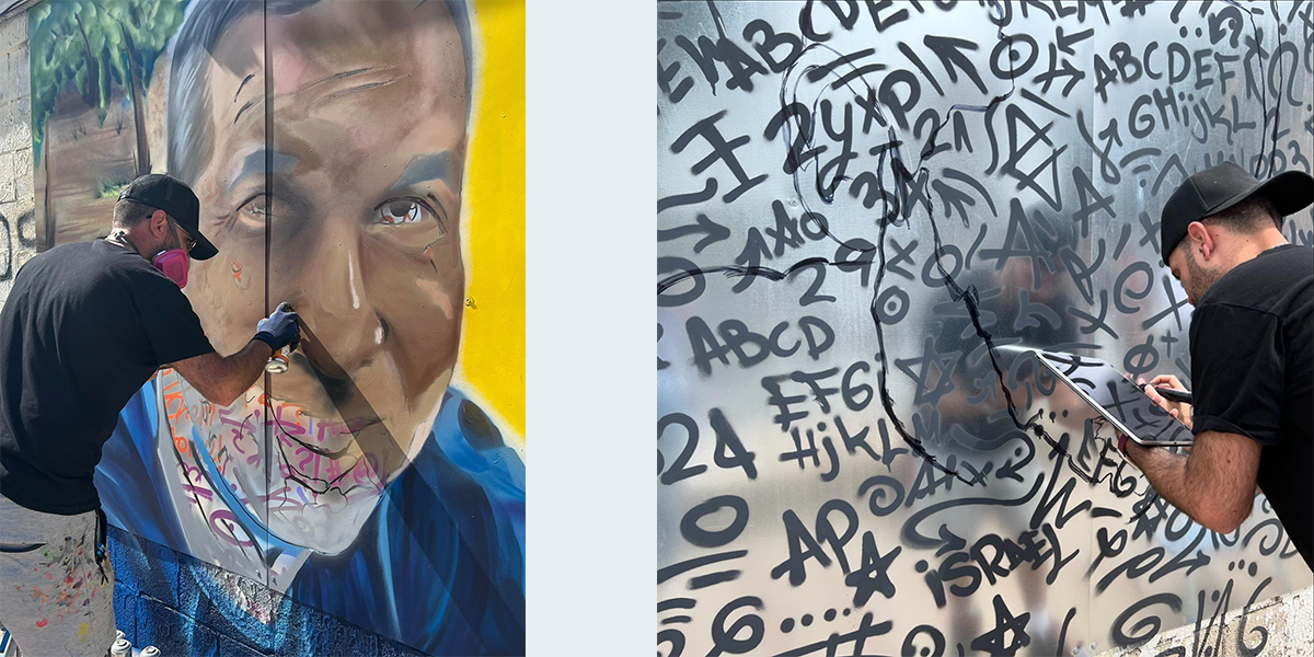 ביוזמת עיריית רחובות צוירו דיוקנאותיהם של נמרוד כהן ורון בנימין, החטופים בעזה בידי האמן תושב העיר לירן טפיירו.