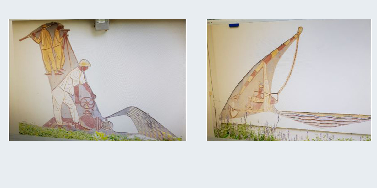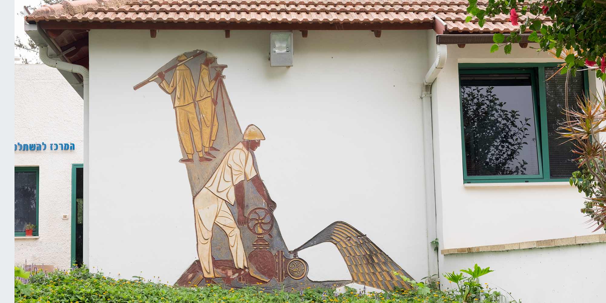 שתי יצירות סגרפיטו על חזית "בית המשאבות" לשעבר, שכונה גם "מכון המים", כיום בשטח המכללה האקדמית רופין.