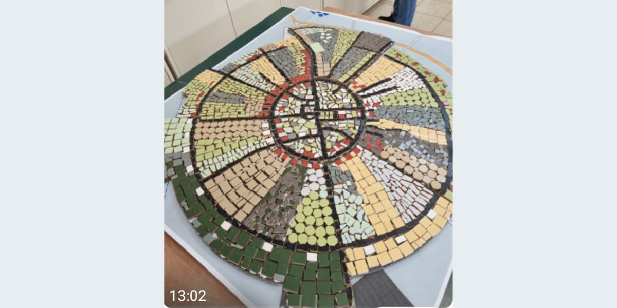 את הפסיפס הכינו ביוזמת תמי לוז־גרבר ובהנחיית האמנית דליה גרוסמן בני הנוער (ט–יא) מן המושב בשיתוף עם בני נוער מאן ארבור (ארה"ב) במסגרת מיזם "שותפות 2000".