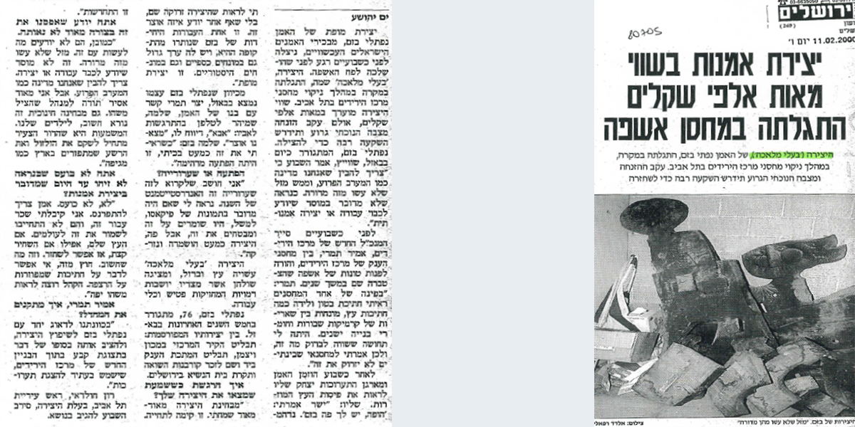 היצירה "בעלי מלאכה" של נפתלי בזם שאותרה במחסני מרכז הירידים בשנת 2000 שוקמה בידי ג'ון בייל ואבי לינדנבאום בשנת 2010 לערך,