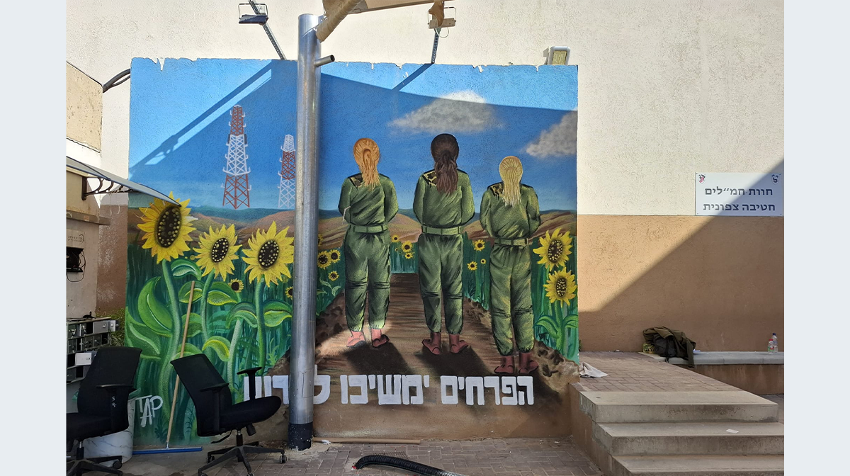 בעקבות אירועי 7 באוקטובר 2023, שבהם נרצחו תצפיתניות רבות ואחרות נחטפו, שהיו בחמ"ל בנחל עוז, נתבקש הצייר לצייר ציור לזכרן. החמניות הן חלק מהנוף הקבוע באזור.